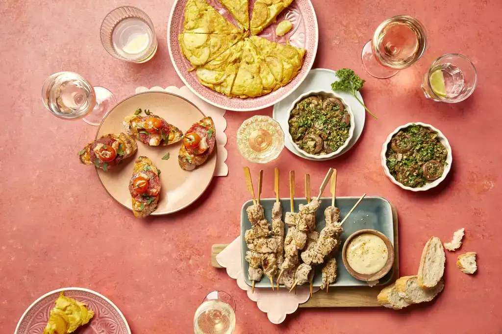 Spaanse sfeer in eigen land met een tafel vol tapas. Omdat het allemaal kleine hapjes zijn, kun je iedereen bedienen: vega, vegan, vis of vlees. We hebben heerlijke zomerse receptjes voor je gemaakt. Welke ga jij proeven?
