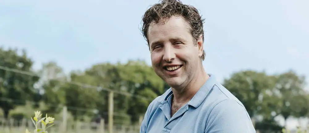 Jeroen begon zijn bedrijf ruim tien jaar geleden. "Zomaar, uit het niks", vertelt hij. "Mijn moeder werkte in de zorg, mijn vader was vertegenwoordiger. Iedereen waarschuwde me: ga geen eigen bedrijf beginnen. Maar ik deed het toch. Onderweg naar een beurs in de auto met collega's gooide ik de vraag op: wat zal ik gaan verbouwen? Biologische blauwe bessen, zou dat een goed idee zijn? De ene collega wist zeker dat er markt was, de andere wist dat het biologisch moest kunnen. Dat is de reden dat ik mijn blauwe bessen heb aangeplant."