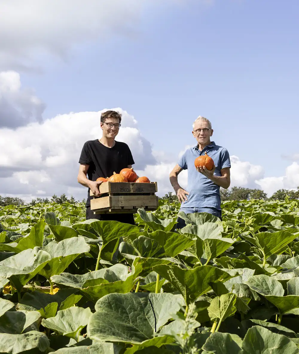 "Het is heel belangrijk dat iedereen de gifspuit laat staan, want je kunt makkelijk zonder! Tijdens de teelt wordt er geschoffeld zolang we tussen de rijen door kunnen. Als het veld helemaal bedekt is, kun je er met de schoffel niet meer bij en moet je zorgen dat het op dat moment vrij is van onkruid. Eind augustus beginnen we met de oogst. Eind september oogsten we de rest van de pompoenen die we dan opslaan in de pompoenkoeling. Zo kan iedereen de hele winter genieten, zo lang de voorraad strekt."