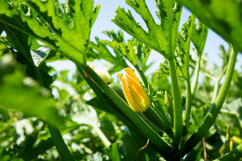 De courgetteplant is een mooi zomergewas. Om goede courgettes te krijgen, is de bestuiving heel belangrijk. De plant heeft mannelijke en vrouwelijke bloemen. De vrouwelijke bloemen hebben het vruchtbeginsel dat na een goede bestuiving, uitgroeit tot een vrucht. De plant draagt meerdere bloemen die in verschillende stadia bloeien.