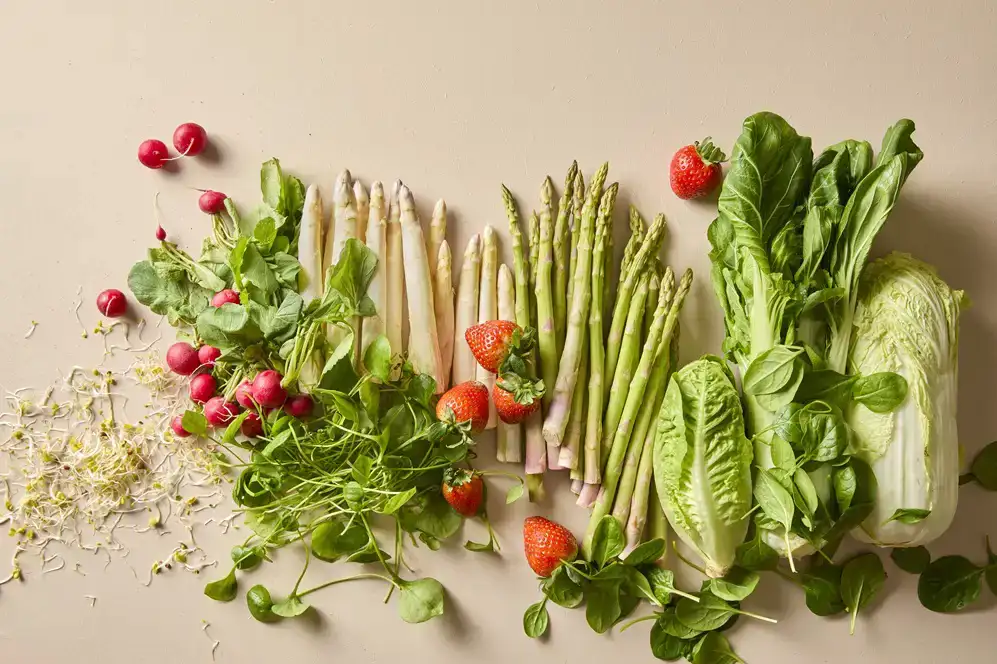Langzaam worden de dagen weer langer, lichter en zachter. De lente knalt uit de grond! Samen met onze vertrouwde telers zorgen we dat de smaak van de lente op je bord ligt. Knapperige radijzen, kakelverse paksoi en de sappigste aardbeien van Nederlandse bodem. Wanneer je met de seizoenen mee eet, geniet je extra van het lekkers dat de natuur te bieden heeft.