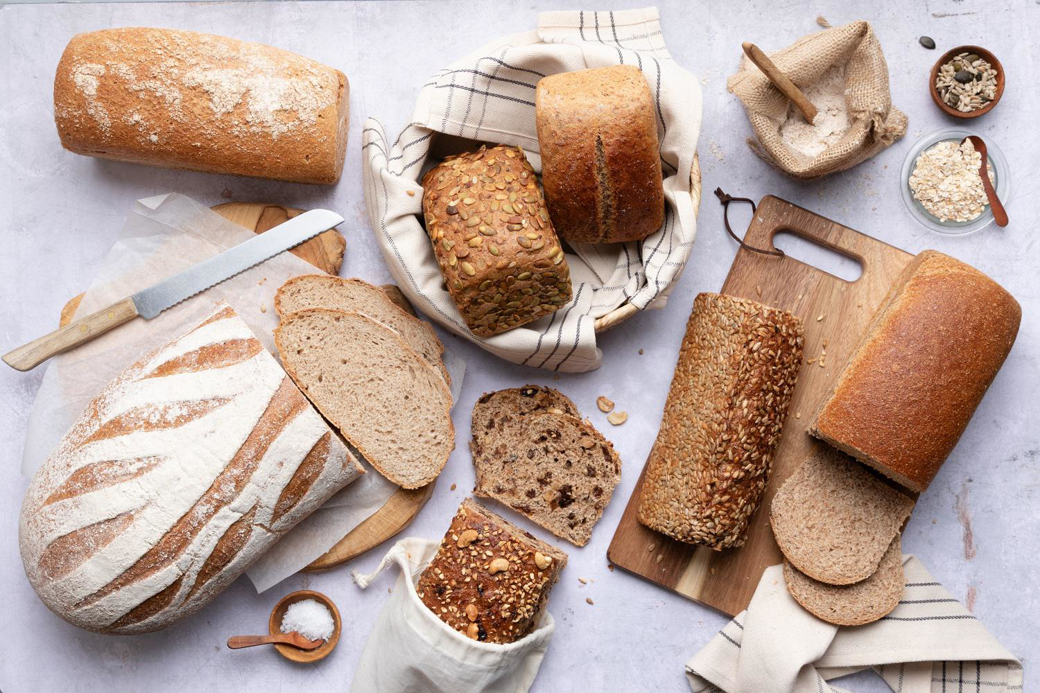 Als basis wordt voornamelijk tarwe of spelt gebruikt. Tarwe is uitermate geschikt als basis voor brood omdat tijdens het bakken de gassen goed worden vastgehouden.